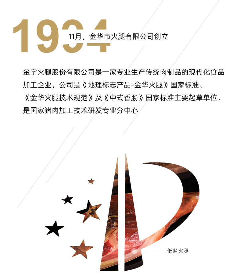 金字火腿股份有限公司是一家專業(yè)生產(chǎn)傳統(tǒng)肉制品的現(xiàn)代化食品加工企業(yè),公司是《地理標志產(chǎn)品-金華火腿》國家標準、