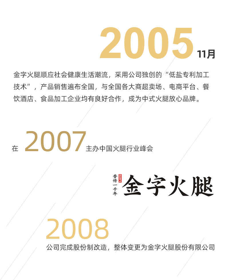 >金字火腿順應(yīng)社會健康生活潮流,采用公司獨創(chuàng)的“低鹽專利加工技術(shù)”,產(chǎn)品銷售遍布全國,與全國各大商超賣場、電商平臺、餐飲酒店、食品加工企業(yè)均有良好合作,成為中式火腿放心品牌。