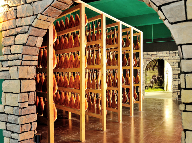 世界火腿博覽館是一個以世界火腿為主題的博覽館,用歷史-地域-工藝-文化為線索,通過展板、照片、聲光和布景等手法,翔實介紹了中國金華火腿、西班牙伊比利亞火腿、意大利帕爾瑪火腿、法國科西嘉火腿和巴黎火腿、美國的鄉(xiāng)村火腿等世界知名火腿的歷史人文,消費習俗、制作工藝、火腿美食等。